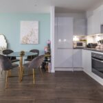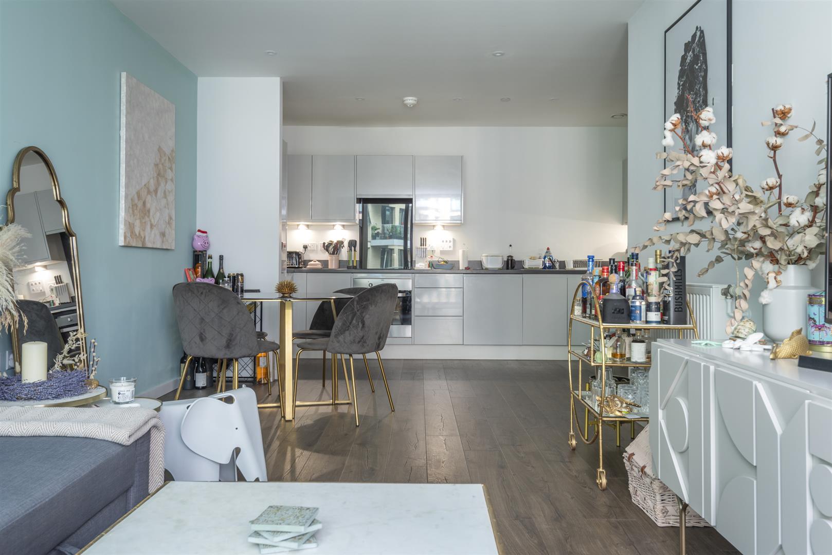 Welcome to this exquisite two-bedroom flat located in the prestigious Bridle Mews, London. Nestled on the fourth floor of Pimento House within the sought-after Goodman's Fields development.