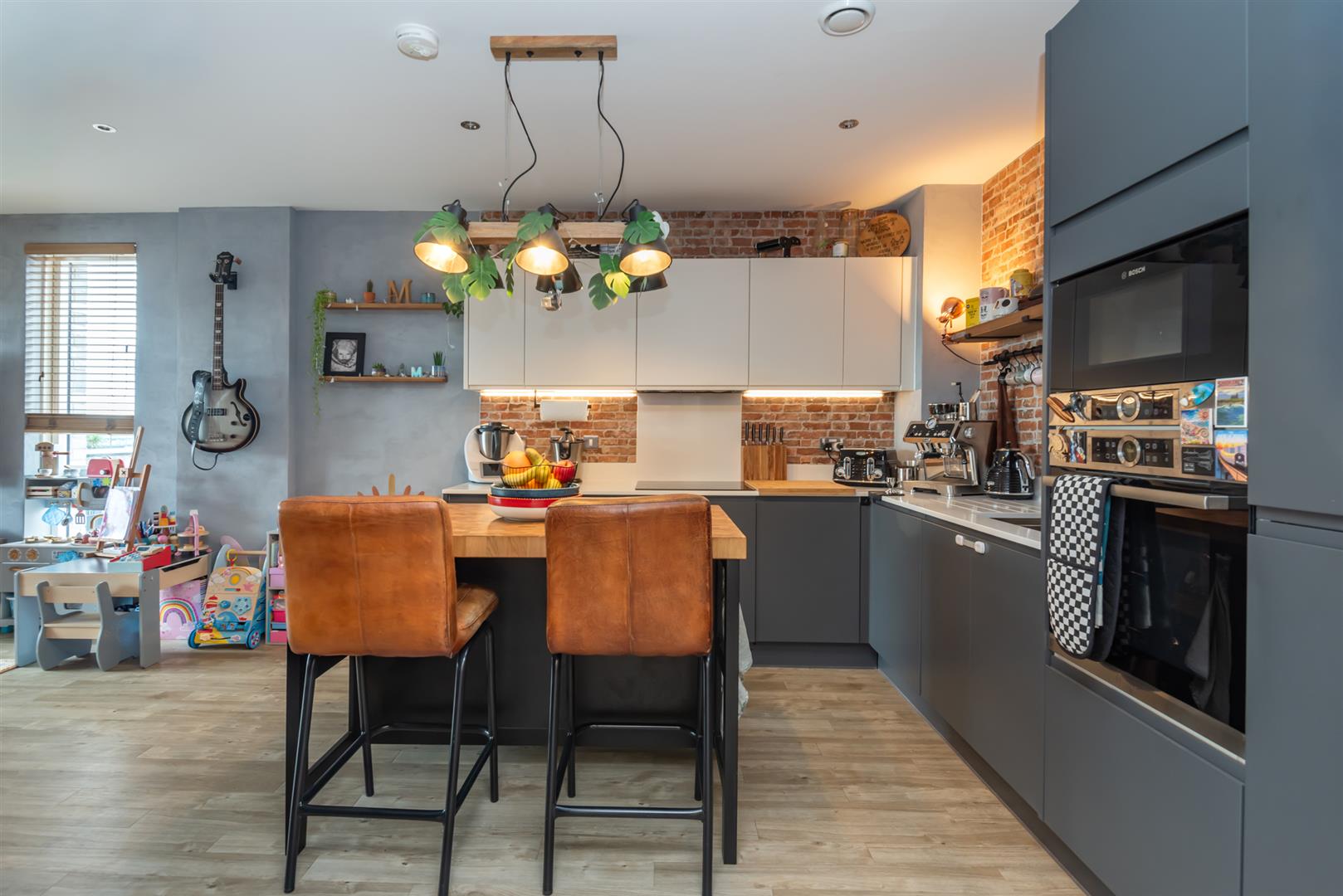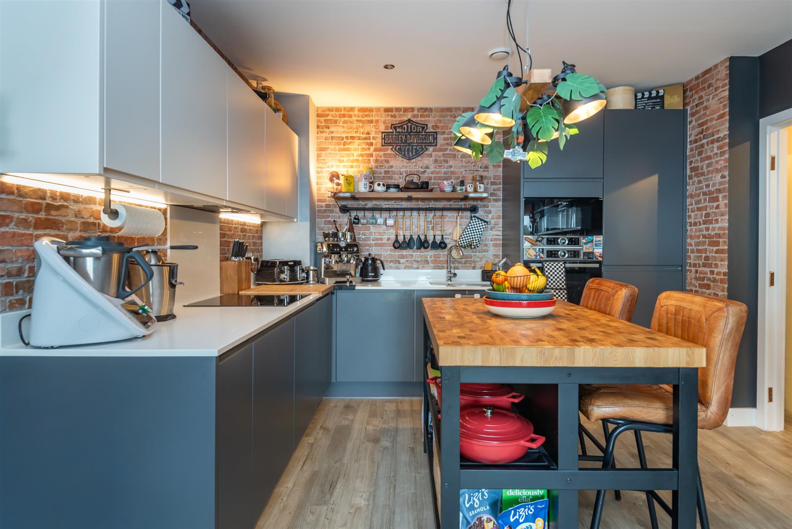 Upon entering, you are welcomed into a well-appointed reception room that serves as the heart of the home. The contemporary design features a large, fully fitted kitchen with a convenient peninsula, perfect for both cooking and entertaining. The spacious living room flows seamlessly onto a beautiful balcony, providing an ideal space for relaxation or al fresco dining.